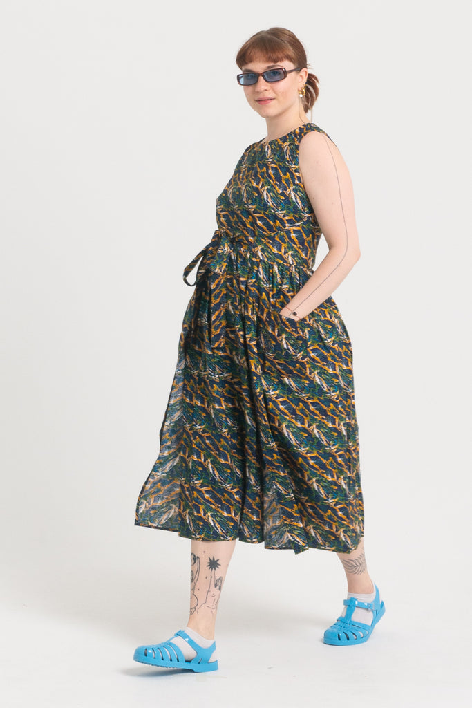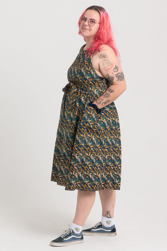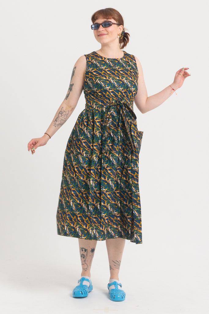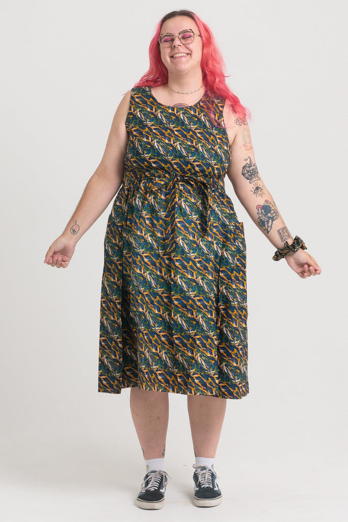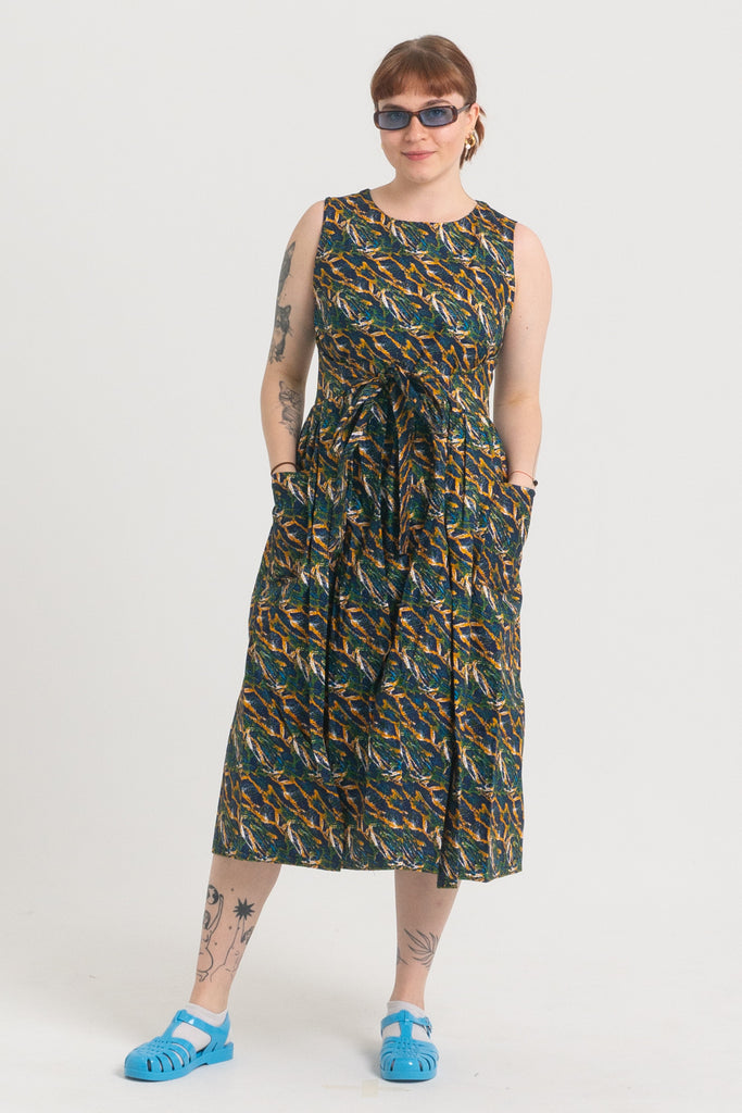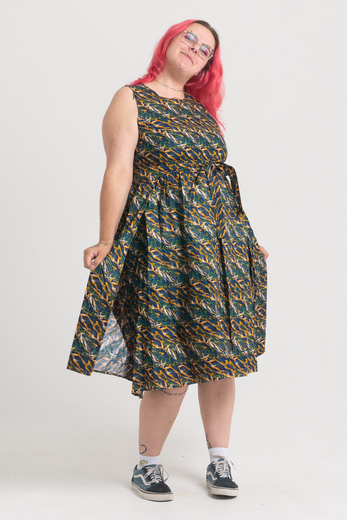 Dopasowanie – dzięki wiązaniom i dwóm warstwom materiału z łatwością dopasujesz sukienkę do swojej sylwetki. Niezależnie od tego, czy chcesz postawić na więcej luzu, czy bardziej podkreślić talię.