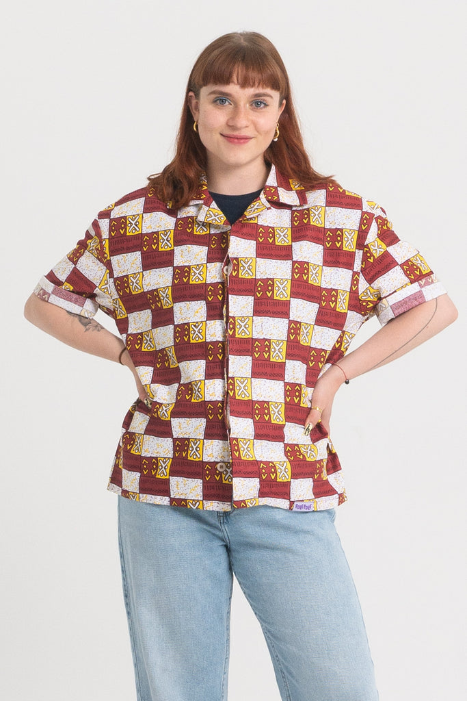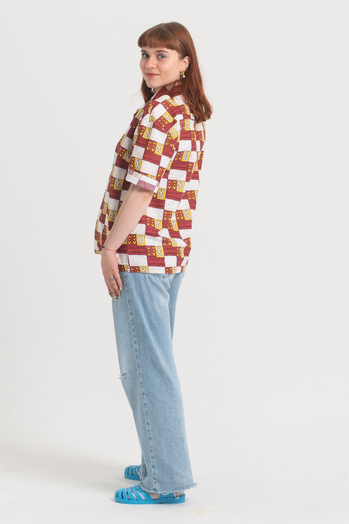 Uszyte w szwalni KAD w Akrze, w Ghanie - przez lokalnych krawców i krawcowe.