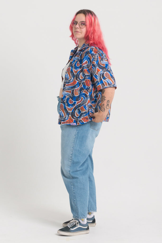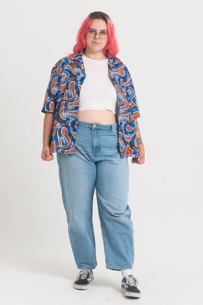 Uszyte w szwalni KAD w Akrze, w Ghanie - przez lokalnych krawców i krawcowe.